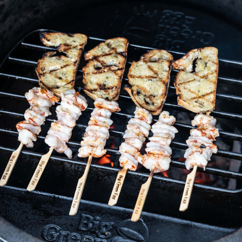 Чугунная решетка для приготовления на деревянных шампурах, Big Green Egg облегчает процесс приготовления сате на шпажках и обеспечивает равномерный результат. Полукруглая форма решетки упрощает размещение шпажек. Вы сможете приготовить кебабы или якиitori без лишних усилий.