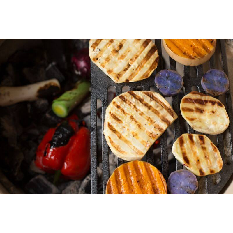 Решетка для гриля – визитная карточка повара Чугунная решетка придаст рыбе мясу и овощам характерный рисунок Она позволяет обжарить продукт со всех сторон и запечатать все соки внутри Когда рисунок готов блюдо можно подавать Полукруглая чугунная решетка – это в буквальном смысле половина решетки Она занимает половину пространства а значит у вас есть место для одновременного приготовления других блюд Полукруглая чугунная решетка доступна только для Big Green Egg модели XLarge Если вам требуется целая чугунная решетка для XLarge просто соедините две полукруглых решетки вместеОсновные характеристики