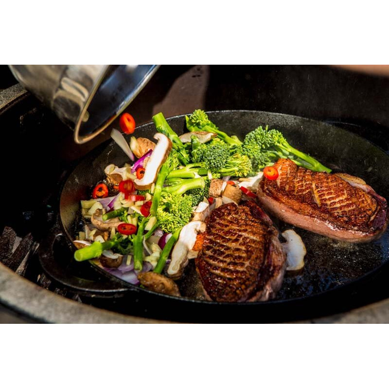 В отличие от людей чугунная сковорода одинаково хорошо реагирует на приготовление быстрых и долгих блюд Эта универсальная чугунная сковорода позволит вам быстро обжарить мясо или наоборот томить или тушить его в течение нескольких часов С ее помощью вы сможете приготовить сирлоин-стейк индонезийский ренданг гратен или запеканку из картофеля Есть немного времени? Тогда вы можете приготовить в этой чугунной сковороде такой замечательный десерт как коблер или клафутиОсновные характеристики