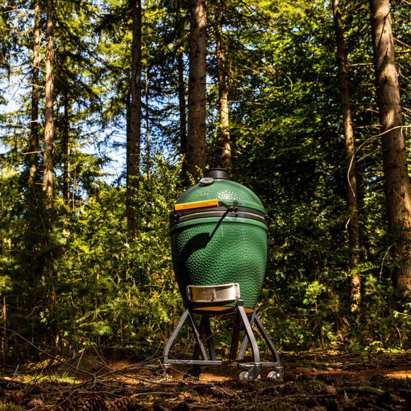 Якісне покриття Big Green Egg витримує перепади температури, сонце, дощ, мороз. Догляд за ним простий — достатньо помити губкою, змоченою у воді з миючим засобом.